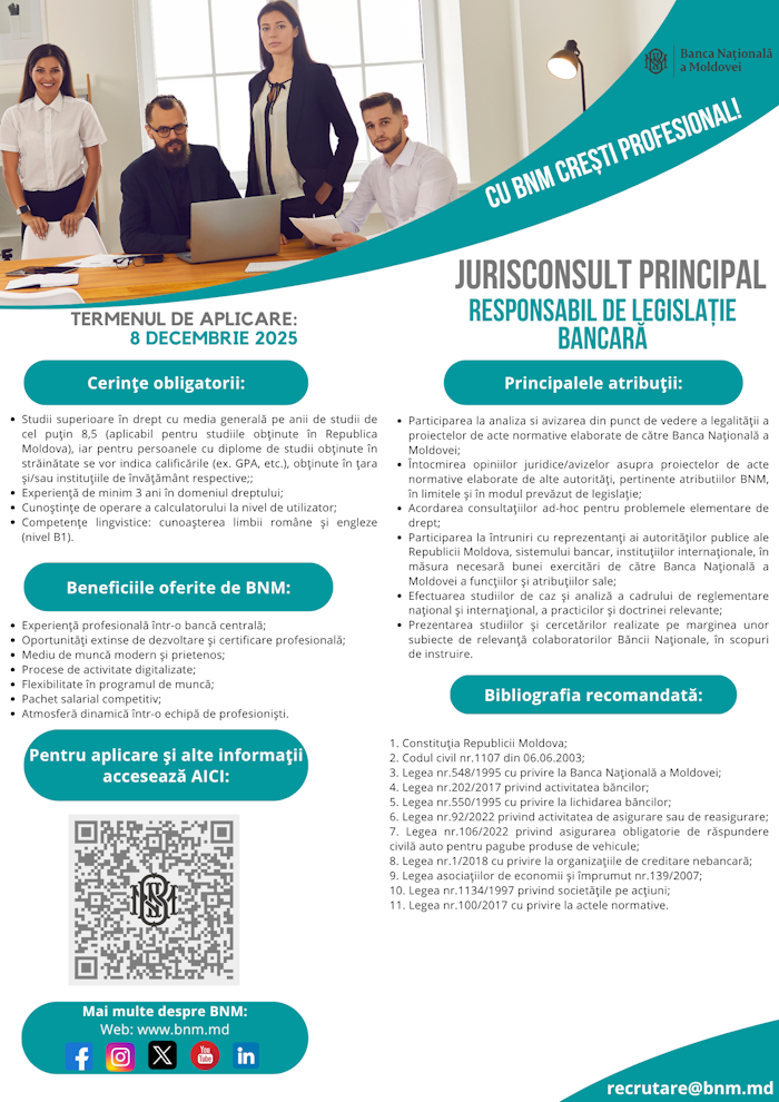 Expert(ă) principal(ă) al/a Secției Rezoluție bancară al/a Direcției Rezoluție bancară
